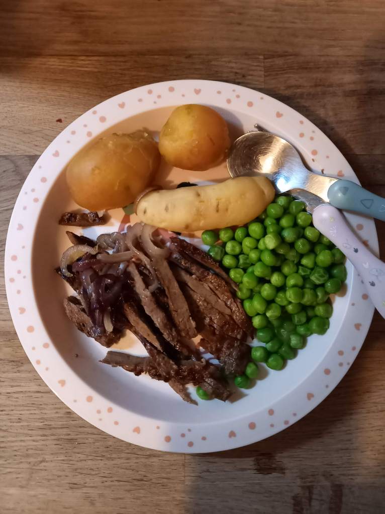 Für ältere Kinder ohne Schluckbeschwerden kann man die Leber auch einfach kleingeschnitten anbieten. Aktuell filetiere ich Arthurs Portion immer zu feinen Streifen und das klappt sehr gut.