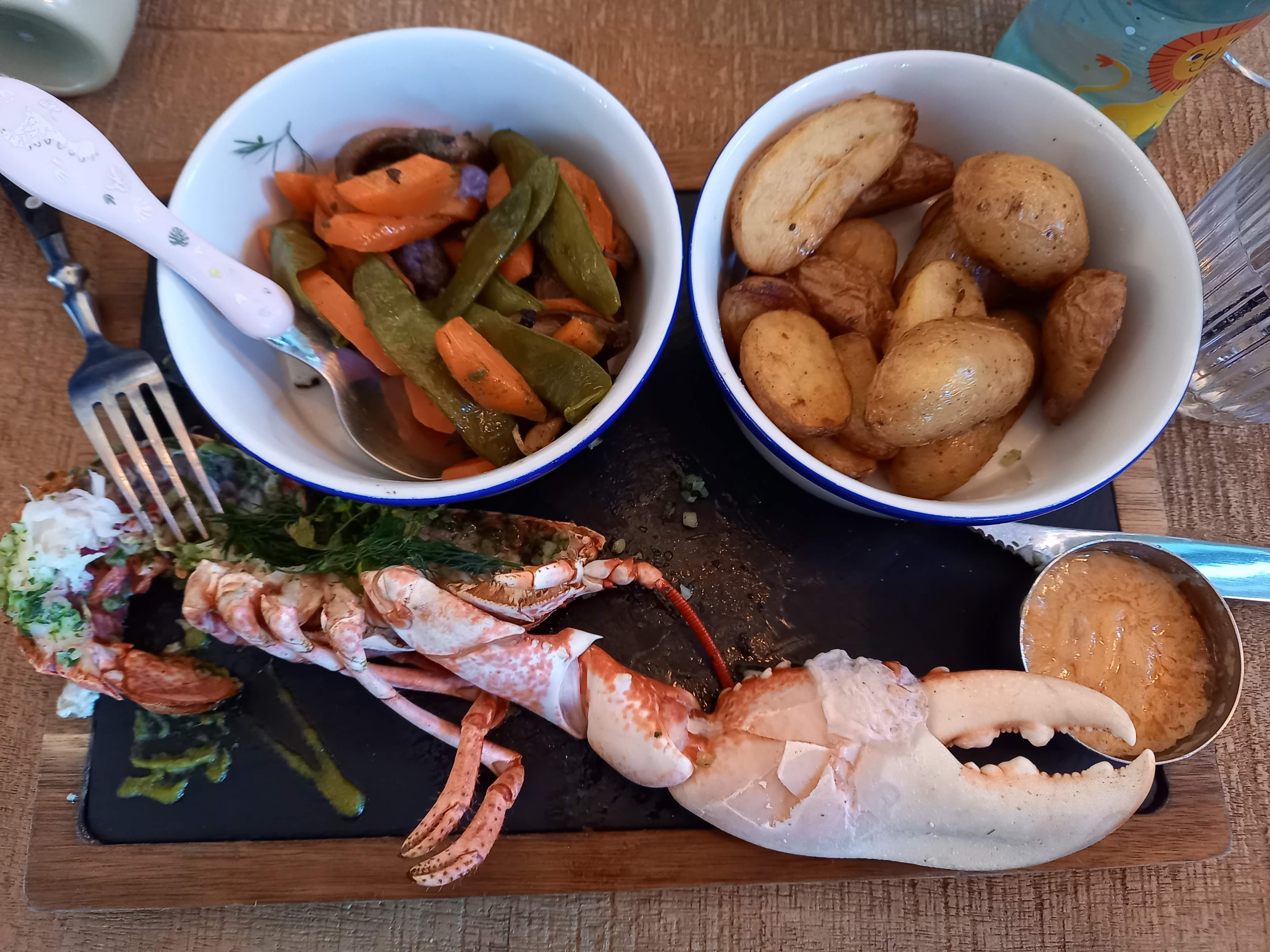 Bei einem Restaurant-Besuch an unserem letzten Abend in Lorient probierten wir dann noch ein weiteres Highlight: Hummer. Wobei man ehrlicherweise sagen muss, dass dies ein ziemlich teures Vergnügen war. 28,- Euro kostete ein halber Hummer, und an dem war wirklich nicht viel dran. Um wirlich noch das letzte bisschen Fleisch rauszuholen, bekommt man für den Verzehr sogar ein merkwürdiges Chirurgenbesteck gereicht, um damit beispielsweise die Schere oder andere schwer zugängliche Stellen auszuschaben.